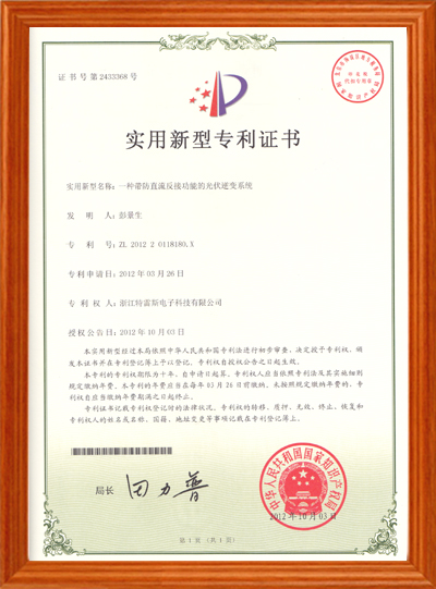 Grid inverter system utility model patent application before has recently obtained a utility model patent certificate which issued by the State Intellectual Property, the following items:
